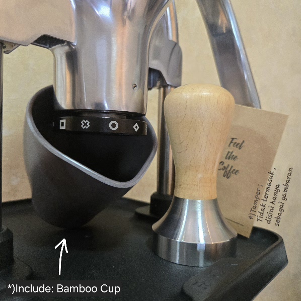 Dilengkapi dengan sebuah Cup penampungan kopi yang terbuat dari Bamboo Fiber.